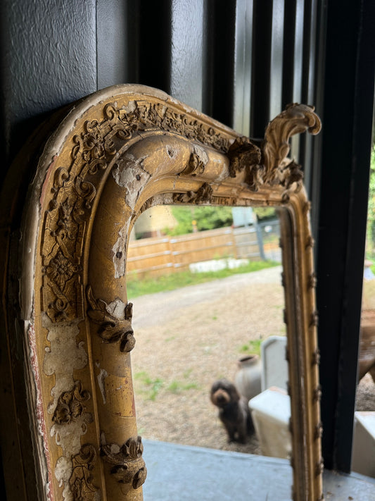 Beautiful French gilt overmantle mercury glass mirror