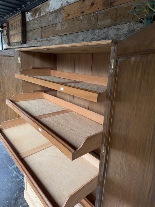Sandblasted Victorian oak linen press