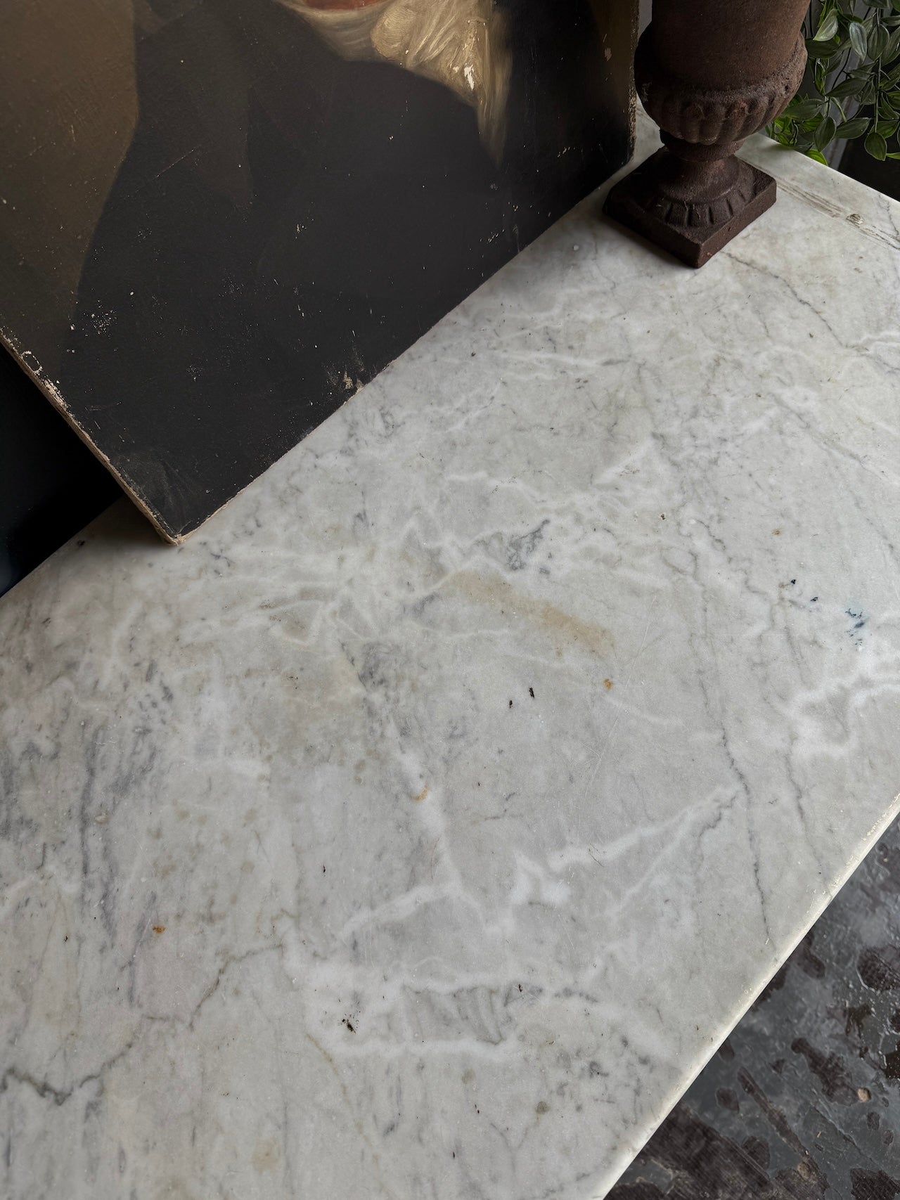Gorgeous vintage French sideboard / cupboard. Original yellowy distressed paint with lovely marble top. Panelled doors and three handy drawers. Rustic interior. General wear and tear in keeping with it's age including some markings to the marble. Would make a great bathroom vanity unit. Can be painted in a colour of your choice for an extra £100.
