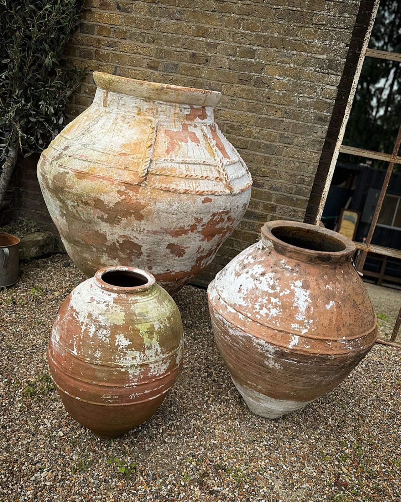 Huge, antique garden urn / olive jar, over a metre tall. Comes with stand. Gorgeous indoor or out. Person next to the urn is 5 ft 3 ½ for reference!