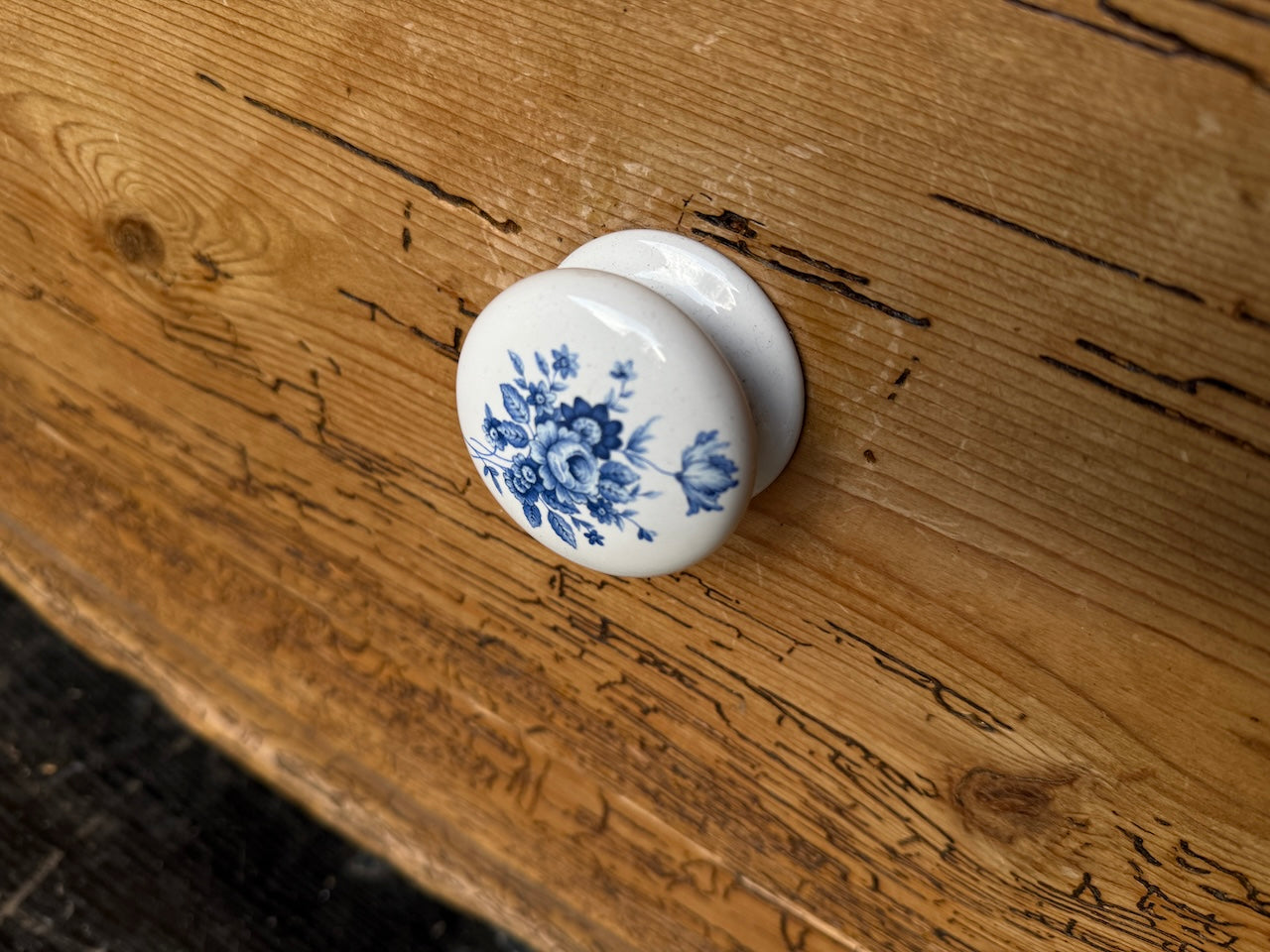 Really lovely rustic vintage child’s wardrobe / cloaks cupboard. Metal rail plus large storage drawer with pretty ceramic knobs.