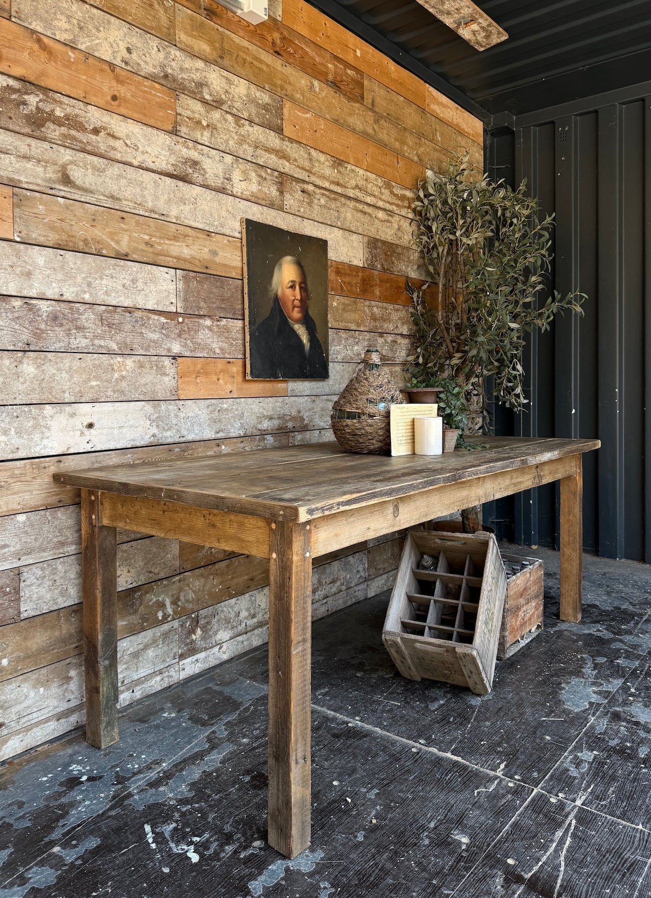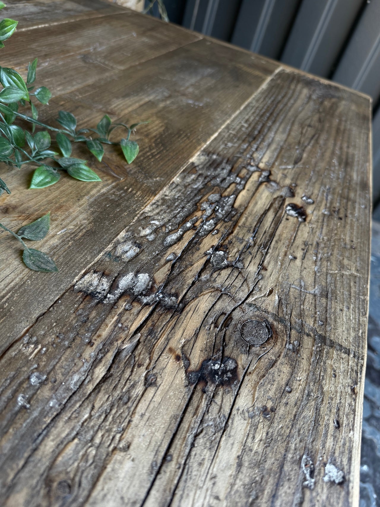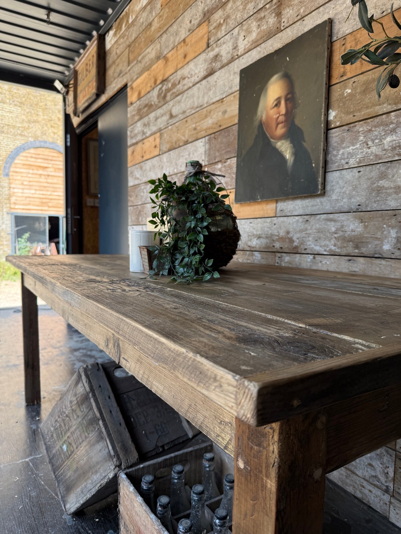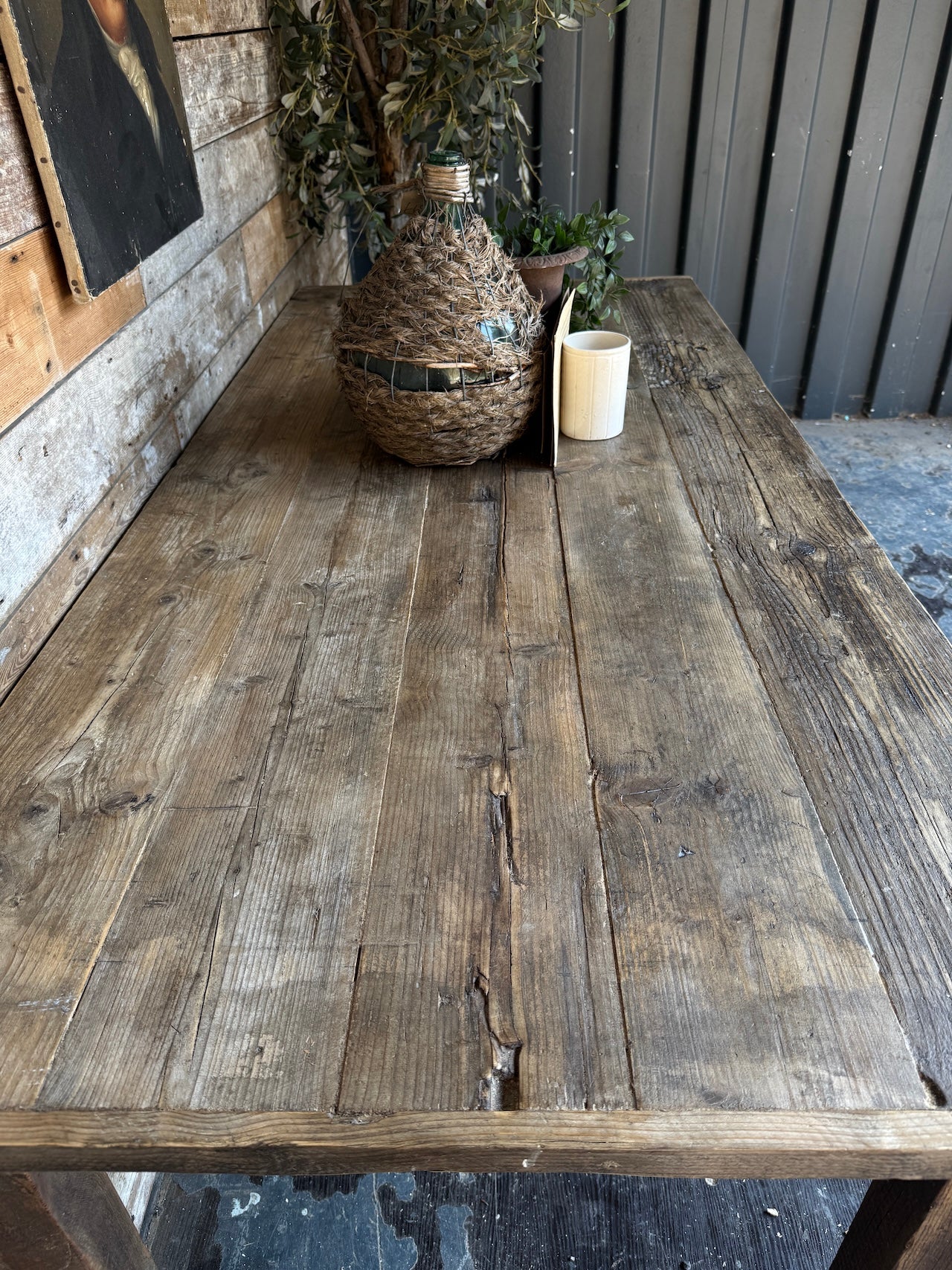 Fabulous handmade rustic reclaimed table. Gorgeous waxed top with lots of character and markings as shown. Reclaimed legs and skirt.